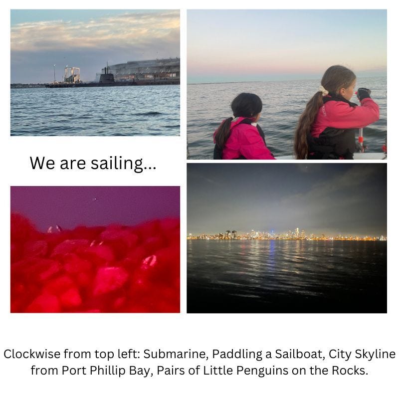 It turned out to be an epic 4.5 hour expedition due to the blustering winds that took us on a 5.3 nautical mile round trip to St Kilda at an average speed of 1.2 knots. We may not have been carried by the wind as much as we were by the paddling of oars, but we were sustained by hot chocolate with marshmallows, sea shanties, a Tay Tay / Disney singalong and the trilling of little penguins in love.